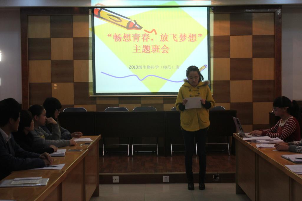 生命因梦想而精彩,因梦想而绽放光芒,11月7日上午,2013级生物科学班在学院二楼报告厅举行了“畅想青春,放飞梦想”主题班会。宁夏大学副校长许兴和学院党委书记沈岩东参加了此次班会。