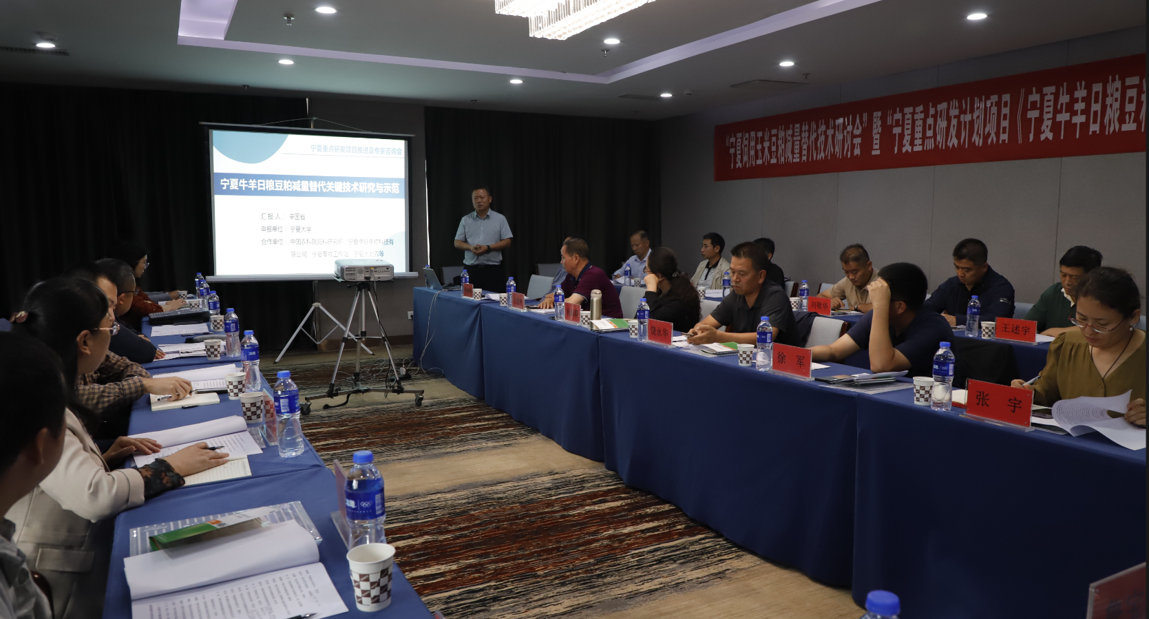 宁夏科技厅农村中心杨海霞研究员代表项目支持单位做了部署,强调《宁夏牛羊日粮豆粕减量替代关键技术研究与示范》项目要严格项目计划执行,合理规范使用经费,对标对表完成项目任务。农业农村厅科教处一级调研员饶永华代表产业部门表示,本项目的立项落实了农业农村部“提效节粮、开源替代”的《饲用豆粕减量替代三年行动方案》,他希望本项目高质量实施,全面示范推广,带动饲料养殖行业减少豆粕用量,促进饲料粮节约降耗。宁夏博瑞饲料等企业代表同时表达了本项目预期成果的期待,对解决饲料企业发展瓶颈具有重要意义。