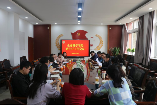 为推进学校“一体两翼”综合改革,进一步加强班主任工作,3月29日,生命科学学院在知本楼112室召开班主任工作会议。会议由学院党总支书记邓光存主持,院长苏建宇和各年级班主任参加了会议。