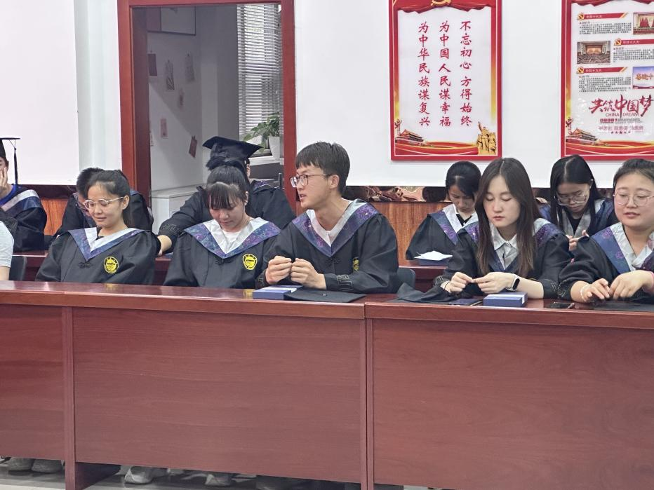 会议伊始领导老师们向毕业生赠送毕业礼物,表达对他们未来的美好祝愿。并鼓励毕业生们要敢于创新、敢于拼搏,不断追求自己的梦想和目标,勇敢面对未来的挑战和机遇。苏建宇从多角度与毕业生们分享成长成才历程,鼓励他们要持续学习、积极实践、常回母校。张强寄语毕业生们要满怀激情地面对未来,始终坚持梦想,保持良好心态,不断成长和进步,开启自己幸福的人生。邓光存从就业角度鼓励毕业生们要保持谦逊敬业的态度,将个人的职业规划与长远的生涯规划紧密结合,确保前行之路稳健而明智。