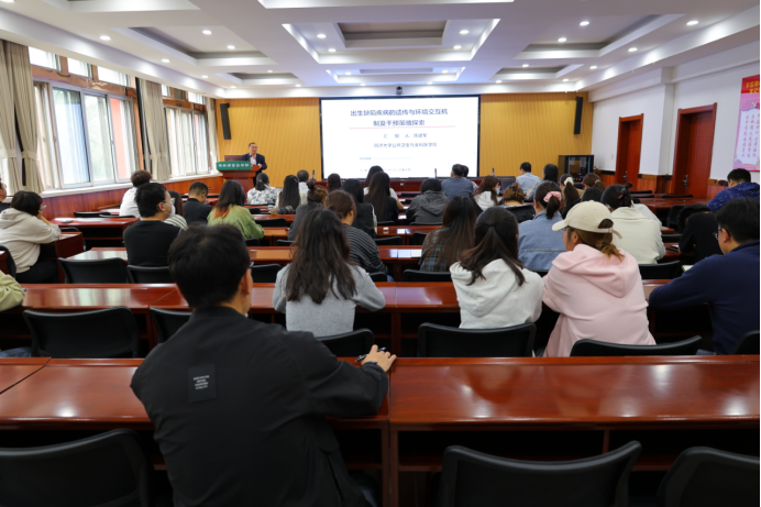 交流座谈会后,陈建军院长作了题为“出生缺陷疾病的遗传与环境交互机制及干预策略探索”的学术报告。报告会上,陈建军院长围绕遗传性视觉系统缺陷疾病、脑部发育缺陷疾病和不孕不育疾病等临床目前无法治疗的病例展开讲述,详细介绍了课题组近几年利用遗传学及功能基因组方法,对相关疾病的遗传原因及机制展开了深入研究。对这些科学问题的解答是推动临床及基础研究的重要源动力,也是实现精准医学及转化医学研究的关键所在。学院部分教师及研究生参加了本次报告会。参会师生就报告内容与陈建军院长开展了交流讨论。