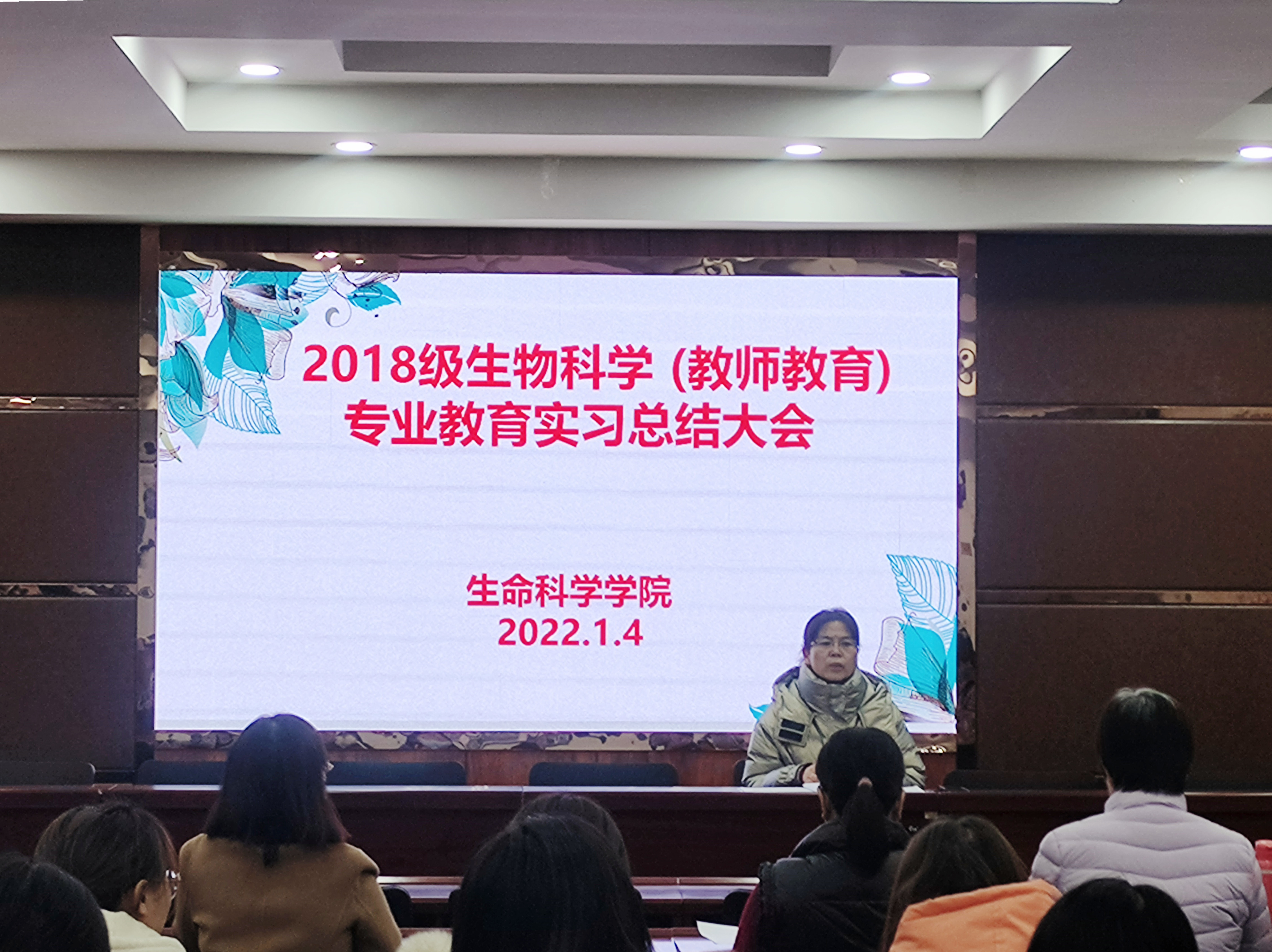 2022年1月4日,我院于文萃校区知本楼报告厅召开了2018级教育实习总结大会。全体实习指导教师和2018级生物科学(教师教育)专业学生参加了会议,会议由师范教育教研室主任周续莲主持。