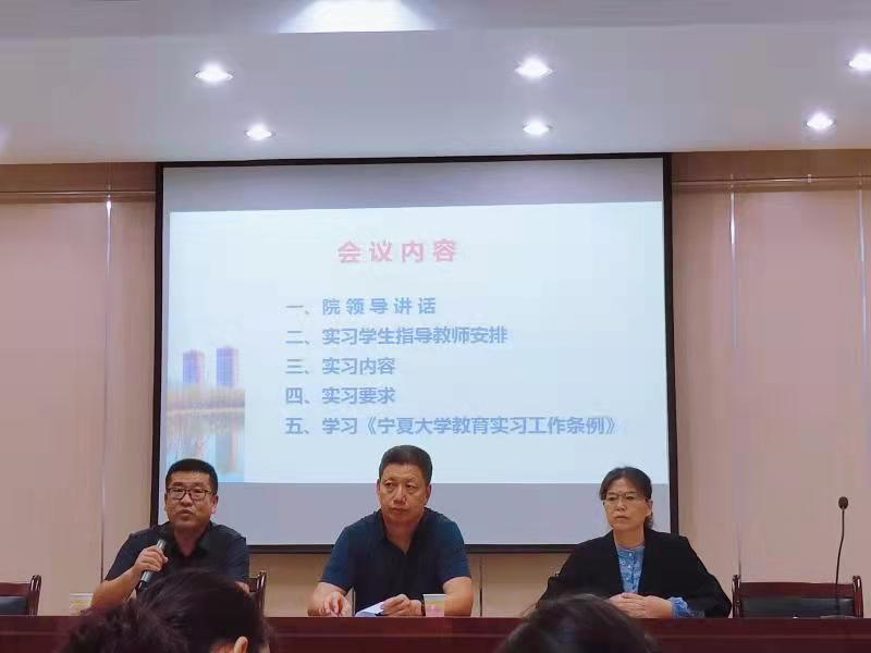 最后,周续莲对实习的时间、内容、要求,实习生和指导教师的分配进行了安排部署,并带领同学们学习了《宁夏大学教育实习工作条例》的相关内容。会后各位指导老师与实习生见面,对具体工作进行指导。