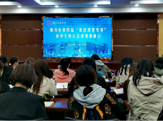 2021年3月18日下午,我院师范教育教研室组织2018级生物科学(教师教育)专业学生观摩了“银川市第四届‘推进课堂变革’初中生物示范课观摩研讨”活动。观摩分两组进行,一组同学到银川二中北塔分校进行现场观摩,另一组同学在宁夏大学文萃校区知本楼报告厅观摩网络直播。