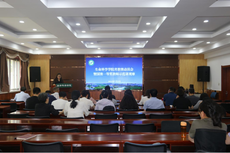 为深入学习贯彻党的二十大精神,加强师德师风建设,提升青年教师的教学能力和业务水平,7月6日下午生命科学学院青教赛动员会暨国赛一等奖教师示范观摩课在知本楼二楼报告厅召开。学院院长苏建宇、副院长李乐出席会议,农学院王彬教授应邀参会,青教赛全体参赛教师及其他专任教师参加会议,会议由苏建宇主持。