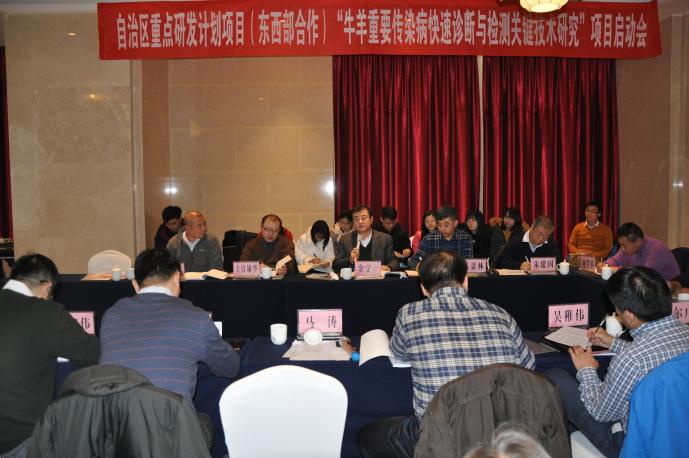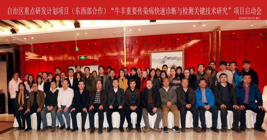 1月27日,由我校王玉炯教授主持的宁夏回族自治区东西部科技合作项目“牛羊重要传染病快速诊断与检测关键技术研究”项目启动会在银川举行,以军事科学院军事医学研究院金宁一院士为主任委员的项目咨询专家委员会全体成员,宁夏大学校长助理马涛、科技处副处长赵军等相关领导出席会议,各课题负责人及骨干成员参加了会议。启动会由科技厅农村处徐小涛处长主持。