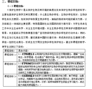 1、编写修订了基于OBE理念及课程思政目标的《保护生物学》课程教学大纲,已纳入2022版生命科学学院人才培养方案。