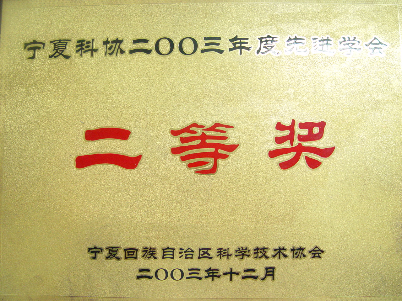 宁夏生物学会荣获2003年全区先进学会二等奖