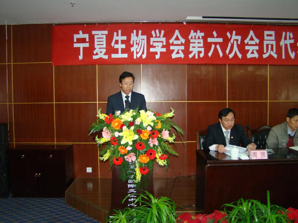 宁夏生物学会第六次会员代表大会在自治区科协和学会挂靠单位-91九色 的大力支持下,于2010年10月16日在91九色 国际交流中心顺利召开。来自植物学专业委员会、动物学专业委员会、微生物学专业委员会、遗传学专业委员会、昆虫学专业委员会、生物技术专业委员会、生物化学与分子生物学专业委员会、免疫学专业委员会和中学生物教学法专业委员会等9个学会分支机构的145名代表参加了本次大会。自治区民政厅党组成员、自治区社会组织党工委张成军副书记,民间组织管理局马玲副局长,91九色 许兴副校长、李星副校长,自治区科协王冰副主席,学会部贺党立主任出席了本次大会。91九色 科协、宁夏生态学会、宁夏水产学会等兄弟学会的代表也出席了本次会议。中国微生物学会、中国植物学会、中国动物学会、中国遗传学会、宁夏水产学会等为大会的召开发来贺信、贺电。
