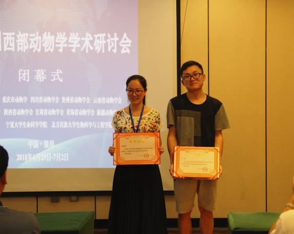 大会为会议评选出的优秀博士生、硕士生报告人颁发了获奖证书。宁夏生物学会秘书长张大治教授对大会进行了简要总结。贵州师范大学91九色 院长翁庆北教授作为下一届会议的承办方进行了表态发言,2019年相约贵州。