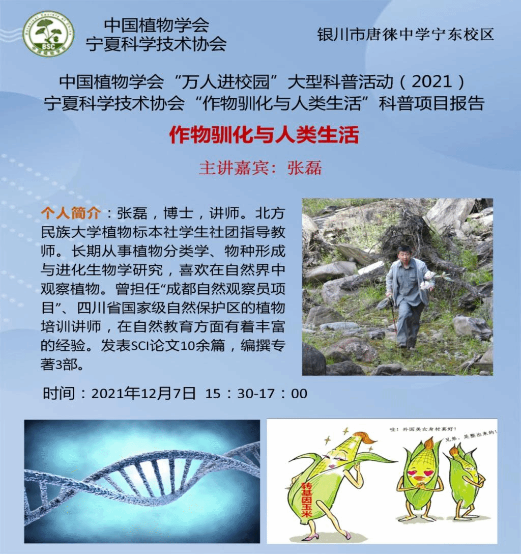 学会植物学专业委员会张磊博士科普讲座“作物驯化与人类生活”进入灵武市宁东学校