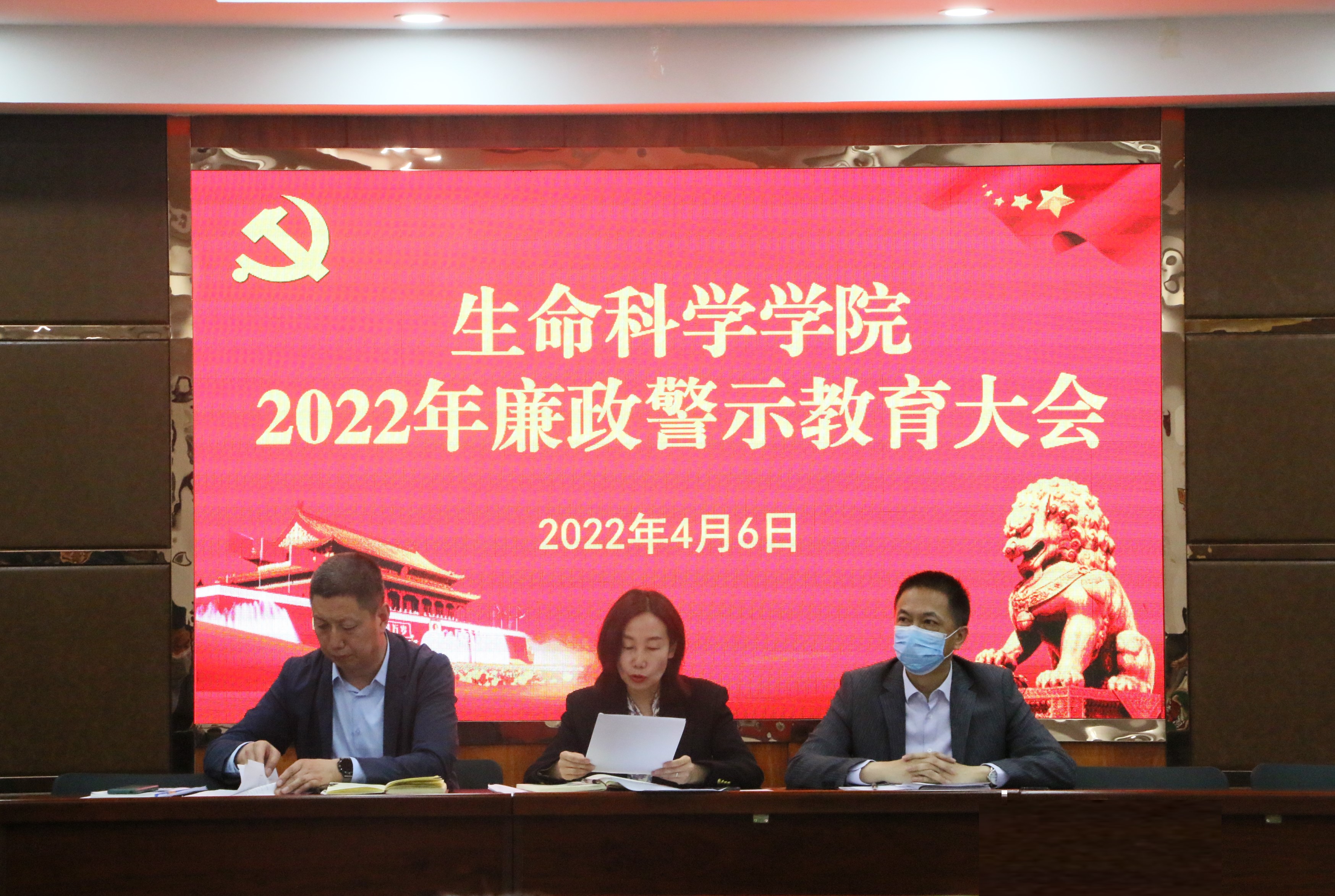 为认真贯彻落实学校2022年全面从严治党工作会议精神,推进学院2022年“领导干部廉政警示教育月”活动,4月6日下午,我院在文萃校区知本楼报告厅召开生命科学学院2022年廉政警示教育大会。学院全体教职工参加了会议,会议由院党委副书记何彦平主持。