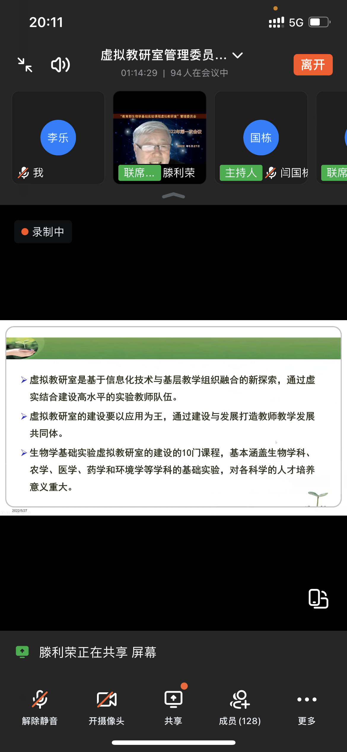 5月27日,生物学基础实验课程虚拟教研室召开管理委员会2022年第一次会议,会议决定在我校生命科学学院设置“教育部生物学基础实验课程虚拟教研室宁夏大学生命科学学院分教研室”,生命科学学院副院长李乐担任分教研室主任并当选教育部生物学基础实验课程虚拟教研室管理委员会委员。