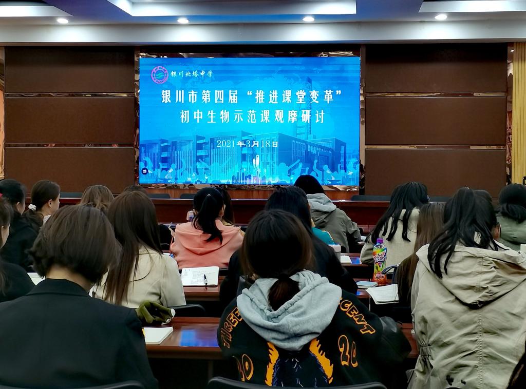 2021年3月18日下午,我院师范教育教研室组织2018级生物科学(教师教育)专业学生观摩了“银川市第四届‘推进课堂变革’初中生物示范课观摩研讨”活动。观摩分两组进行,一组同学到银川二中北塔分校进行现场观摩,另一组同学于宁夏大学文萃校区知本楼报告厅观摩网络直播。