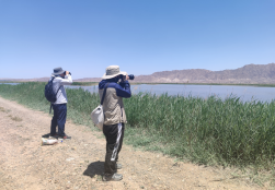 在青铜峡库区湿地保护建设管理局自然保护科曹学东科长的带领下,师生们首先进入保护区实地进行了湿地动物种类的识别与采集工作。实习指导教师结合观察到的保护区生境特点、鸟类及其他动植物种类,向同学们详尽介绍了保护区的鸟类多样性、动植物与环境的关系,将理论与实践相结合,以浅显易懂的方式引导学生们巩固课堂所学的动物学知识。