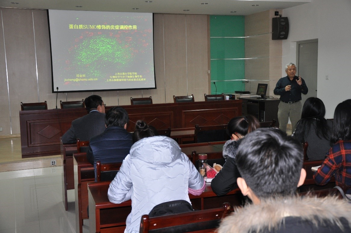 程金科教授先后为我院师生作了题为“蛋白质SUMO修饰与炎症性疾病”的学术报告和题为“如何撰写高质量的国家自然科学基金申报书”的辅导报告,并热心解答了与会师生提出的问题。